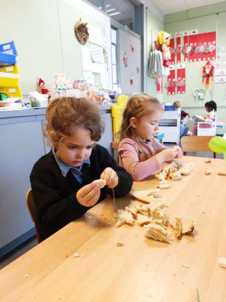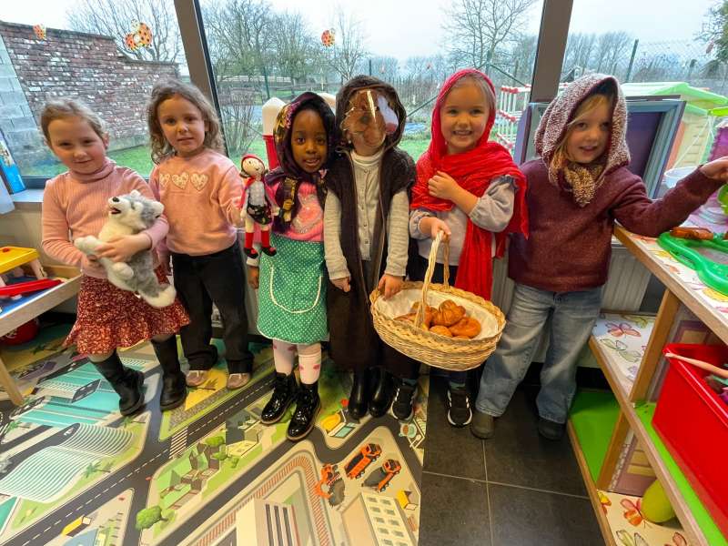 We leerden de letter AA aan de hand van het verhaal van Roodkapje die wegloopt van de wolf en besteedden aandacht aan de juiste mondstand tijdens het oefenen met ons spiegeltje